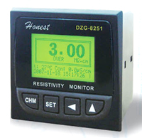 DZG-8251型電阻率儀 | 概況: DZG-8251型電阻率儀采用MCU技術(shù)進(jìn)行數(shù)字化測量和非線性溫度曲線補(bǔ)償。選用12864點(diǎn)陣式液晶顯示器,全英文操作菜單,廣泛適用于化工、制藥、電力等行業(yè)制水設(shè)備在線高純水電阻率值的測量和監(jiān)控。 主要技術(shù)性能: ·測量范圍:0.00~18.25MΩ·cm;(0~20.00μS/cm) ·溫度補(bǔ)償:具有自動溫度補(bǔ)償,補(bǔ)償范圍0~60℃,補(bǔ)償基準(zhǔn)25℃,溫度補(bǔ)償元件:NTC10KΩ; ·顯示方式:選用12864點(diǎn)陣式背光液晶顯示器,同屏幕顯示電阻率值,對應(yīng)電導(dǎo)率值,當(dāng)前溫度值及日期時(shí)鐘等參數(shù),有效顯示尺寸:54×36(mm); ·測量精度:±1%(F·S); ·電極配置:0.01不銹鋼電極,4'管道式螺紋,導(dǎo)線標(biāo)準(zhǔn)配置長度5m; ·報(bào)警控制輸出:本儀器具有電阻率下限報(bào)警設(shè)置或電導(dǎo)率上限報(bào)警設(shè)置及控制觸點(diǎn)信號輸出, 觸點(diǎn)容量:220VAC/7A; · 電流信號輸出:本儀器具有標(biāo)準(zhǔn)隔離型4~20mA正向或逆向電流信號輸出,4mA值和20mA值的工況值可根據(jù)用戶的要求任意設(shè)置,確保輸出精度,輸出負(fù)載≥500Ω;如選擇顯示電阻率值,則·輸出電阻率值對應(yīng)電流信號;選擇電導(dǎo)率值顯示時(shí),則輸出對應(yīng)電導(dǎo)率值的電流信號; ·RS-232C通訊接口輸出:本儀器具有標(biāo)準(zhǔn)RS-232C串行口輸出,可同具有此接口的智能型儀器相連接,實(shí)現(xiàn)測量數(shù)據(jù)的傳輸及記錄。如計(jì)算機(jī)、打印機(jī)等; ·實(shí)時(shí)時(shí)鐘功能:本儀器具有實(shí)時(shí)時(shí)鐘功能,可實(shí)時(shí)記錄測量數(shù)據(jù); ·儀器供電:220VAC±10%?? 50Hz; ·儀器尺寸: 面框尺寸:96×96(mm) 開孔尺寸:91×91(mm) 儀器深度:100(mm)·產(chǎn)品檢驗(yàn)依據(jù):Q/TDCB02-2007; |